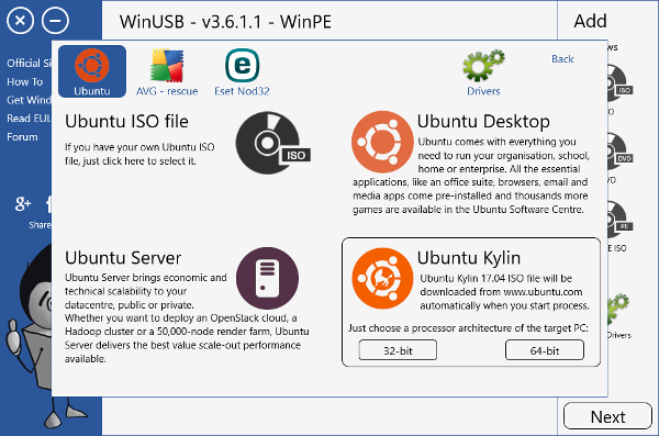 - опцию добавления в съемный носитель драйверов, в том числе и сетевого типа;