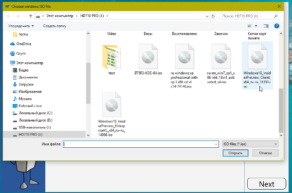 Для работы подсоедините флешку к компьютеру, выберите ее наименование в меню менеджера WinUSB. Далее найдите файлы ISO на устройстве и назначьте пункты типа загрузки системы.
